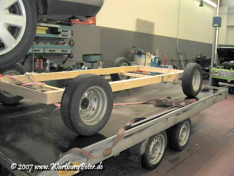 Wer hat ein Auto, daß diese Last bewältigen kann und ist bereit die Fahrt zu übernehmen? Bernd hat sich ohne zögern dafür entschlossen! - weitere Werkstatt wegen Hohlraumkonservierung einplanen, das Fahrwerk sollte ursprünglich solo konserviert werden