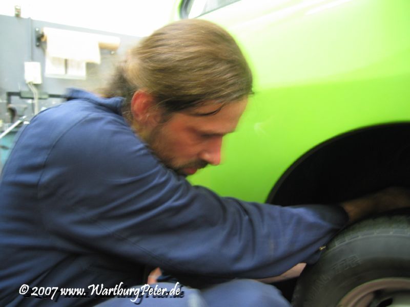 Mir ist es bis heute ein Rätsel, wie man als ausgewiesene Firma für Wartburg Karosserie- und Fahrzeugschlosserei eine entsprechende Karosserie auf dem schiefen, lediglich entrosteten und lackierten Rahmen zusammenschweißen kann?!?