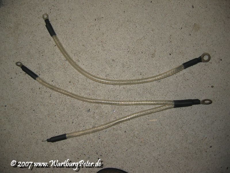 Massekabel fertige ich neu an, die alten Kabelschuhe sind hinüber und die Isolierung recht hart und spröde. Das neue Kabel besteht aus einem Stück in Form eines Y, flexiblem Silikonschlauch und ein paar Stücken Schrumpfschlauch.