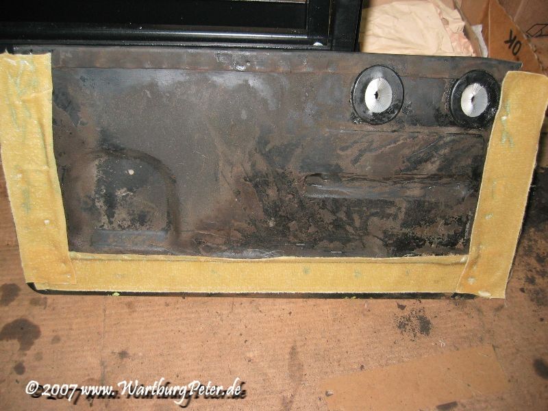 Das Pedalblech erhält ein paar neue Dichtmanschetten und wird mit Mike Sanders Fettband eingesetzt und verschraubt.