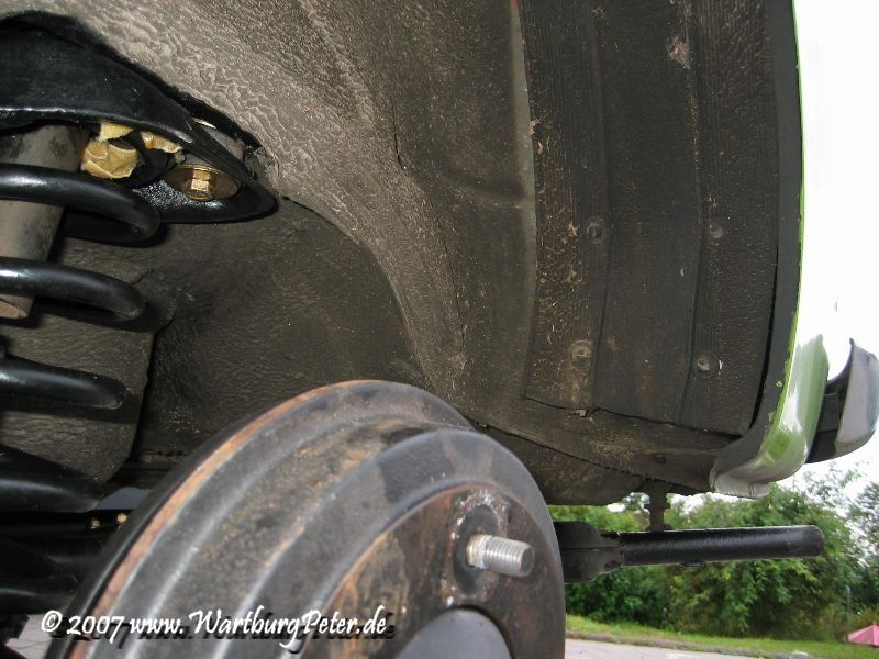 Einstellen der Lenkung: Bei Radialreifen -2mm. Das heißt, die Vorspur muß so eingestellt werden, daß die Reifen am hinteren Felgenrand 2mm enger stehen, als am vorderen Felgenrand! Das Einstellen der Vorspur beschreibe ich nicht, wer das nicht kann, läßt das besser beim Reifendienst oder einer Werkstatt erledigen!