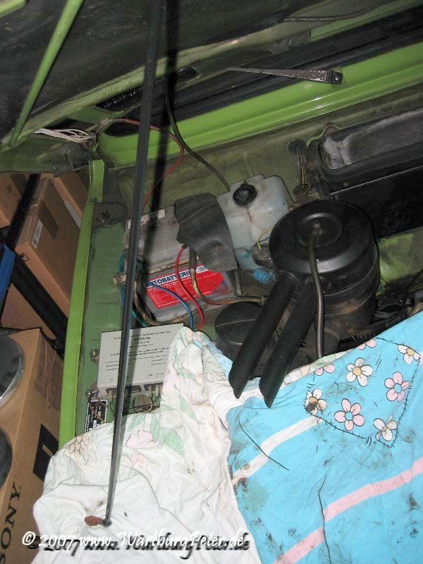 Zündanlage, Gasbowdenzug, Shokebowdenzug, Kraftstoffmomentanverbrauchsgeber, Luftfilter anschließen. Schön fährt das Auto wieder