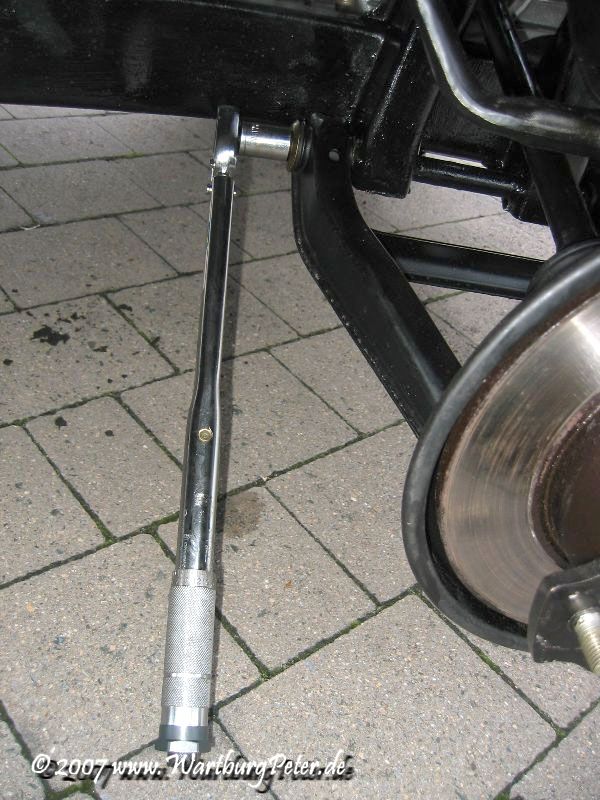 Die 6 Querlenkerbolzen sind mit ca. 65Nm anzuziehen und mit Splinten zu sichern. Die Radmitnehmer werden mit ca. 100Nm befestigt und versplintet.