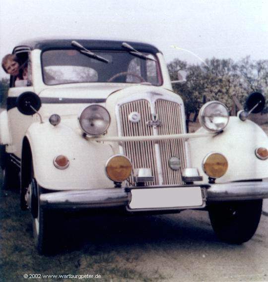 | So ungefähr im Jahr 1972 kaufte mein Onkel diesen F8, der noch das Herstellerzeichen DKW trug. Das Auto, Bj. 1938, ausgestattet mit 3-Gang-Getriebe (85 km/ h), zwei wassergekühlten Zylinder (700 cm³) und Dynastart (Lichtmaschine und Anlasser in Einem), war in einem jämmerlichen Zustand. Ernsthaft, er kaufte das Auto ohne hinzugucken und der Schock über den Zustand des F8 war so herb, daß er eine Woche lang einen Bogen darum machte. Das Holz war überall verfault und verquollen, das Leder gerissen, die Bleche durchgerostet, die Lenksäule war völlig unbefestigt und "steckte" nur um Lenkgetriebe und vieles andere Schlimme mehr. Schließlich hat mein Onkel den F8 innen und außen derart herausgeputzt, daß ihm das Auto förmlich bei rot an der Ampel unter dem Hintern weggekauft wurde. Das war 1975. |