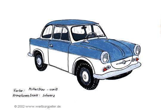 Auch dieser Trabi mußte auf Vordermann gebracht werden. Da der Lackier nicht kapieren wollte, wie der Lack aufgetragen werden sollte, zeichnete er mal eben schnell einen Trabi - das und noch mehr, hat er drauf. Der Trabi wurde mit verschiedenen Extras ausgestattet, die nicht nur die Sicherheit erhöhten, sondern auch für Individualität sorgten. |