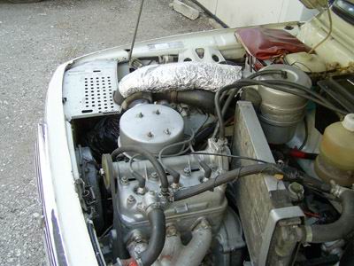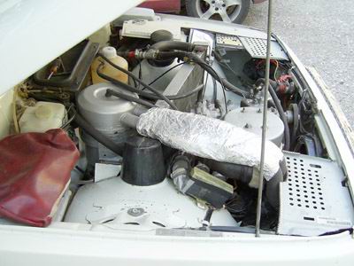 Luftfilter ist für eine bessere Thermoisolierung und die Aluminiumfolie (mit einer Thermowatte) am Krümmer ist als Geräuschfilter benutzt. Ich habe alles im Auto sehr gut Geräuschisoliert.