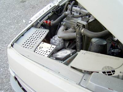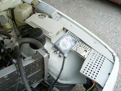 Die Computer Festplatte im Motorraum ist nur mit nebenanstehenden (schwarz) Zündanlagenregler (Firetuning) verbunden.