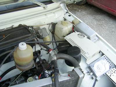 Die Ansaugschläuche gehen nach außen unter die Scheinwerfer um dichtere Luft zu saugen, unten den Scheinwerfern ist der Wasserstoffsdiffuser, etwas nach Wasserfilteranlage - so geht alles in eine Diffusionspumpe.