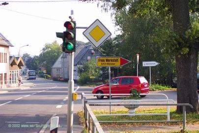 Sobald man den "Erbgerichts"-Hof wieder verläßt, fährt man zurück zur Ampelanlage (Richtung Freiberg). Dort ausgeschildert, findet man den Weg zu Olaf Heinekens Werkstatt (Ostwärts). Die Entfernung beträgt genau 1 km. | |||