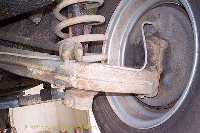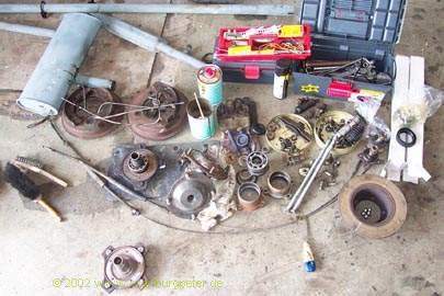 Sand, Dreck und Flugrost ließen die Hinterachse so aussehen, daß man Lust bekommt, etwas daran zu verändern. Grob gesäubert, sind sogar noch Farbreste zu erkennen. |