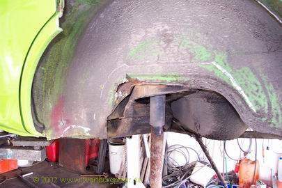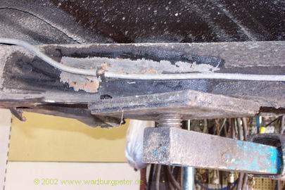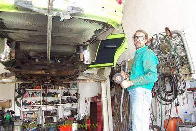 Im Bereich der Türen hatte ich früher die Radkästen gespachtelt, daher fallen sie nicht unangenehm auf. Olaf entschied deshalb, dort vorerst nichts zu machen, wie ursprünglich beabsichtigt, sondern sich um die "inneren" Roststellen zu kümmern. Eine schwierige Aufgabe, wenn man die Karosserie nicht vom Fahrgestell trennt. |