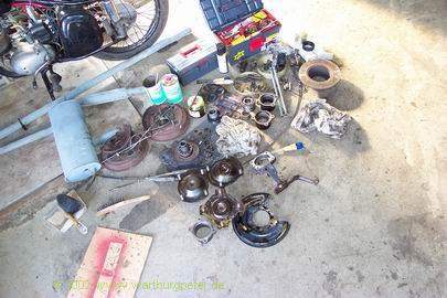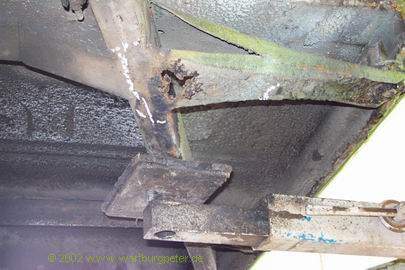 Der Umfang der Arbeiten am Fahrgestell gestaltete sich größer, als zunächst angenommen. Geplant waren die Reparatur der vorderen Fahrgestell Karosserieaufleger und der äußeren Radkästen hinten. Bei diesen Blech- und Schweißarbeiten, sollte Olaf sein handwerkliches Geschick zum Einsatz bringen, während ich die übrige Montage und Demontage, sowie die Erneuerung der Hinterradbremse vornehmen wollte. Kaum aufgebockt, gaben sich zusätzlich drei Radlager zu erkennen, die partout nicht mehr mitfahren wollten oder konnten.