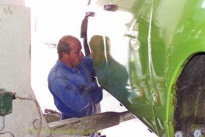 Um ein Auto wieder flott zu bekommen, findet man im Autoservicecenter Heineken alles Notwendige. Und was nicht da ist, wird besorgt und was nicht besorgt werden kann, wird fachgerecht improvisiert. Nachdem ich die Kotflügel hinten demontierte, konnten die Arbeiten beginnen. |