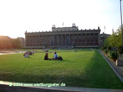 | Lustgarten und Altes Museum, davor eine 7 m durchmessende Granitschale, die aus einem Findling geschlagen wurde. | ![]() |