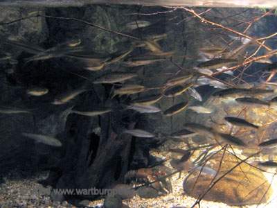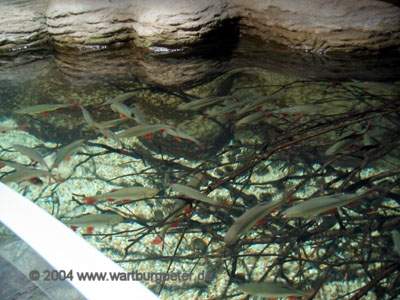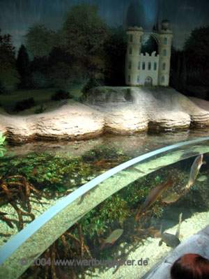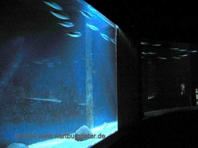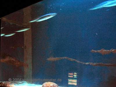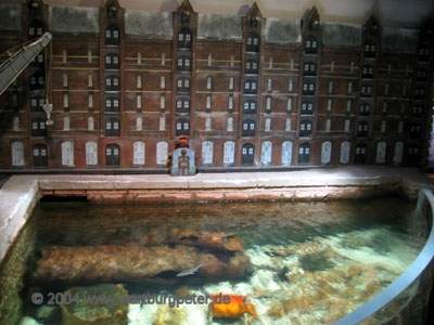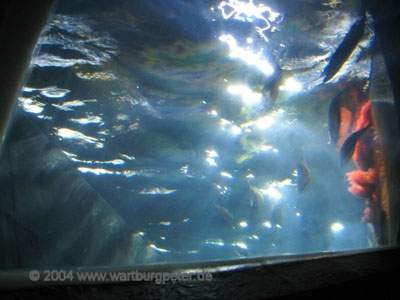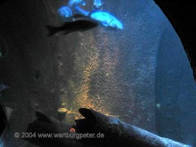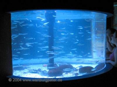 Wer mag, kann sich die Attraktion innerhalb eines Hotels ansehen, das Sealive. Der Eintritt ist jedoch nicht ganz billig. Man sollte für einen Rundgang der schön gestalteten Aquarien etwa 1,5 - 2 Stunden Zeit einplanen. Zu sehen sind Süßwasser- und Meerestiere nicht nur heimatlicher Seen, Flüsse und Meere. So zieht sich der Gang beginnend an den Quellen der Elbe über einen Abstecher der Spree hin nach Hamburg, um schließlich das Leben im Meer zu zeigen. Realistisch umgesetzt sind die Lebensreviere der Wasserbewohner, die in unseren heimischen Gewässern oft genug mit Unrat leben müssen. Interessant auch das zylinderförmige Becken, der Aquaturm, in dessen Innerem man per Fahrstuhl nach oben befördert wird, umgeben von rund 2000 l Wasser (wenn ich nicht irre). Wenn man Glück hat, schwimmen sogar Fische an einem vorbei. Schade nur, das man oben aussteigen muß. Während der Fahrstuhl völlig allein nach unten fährt, darf man selbst in einem engen "gewöhnlichen" Fahrstuhl abseits wieder nach unten fahren. Völlig unverständlich.
