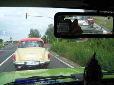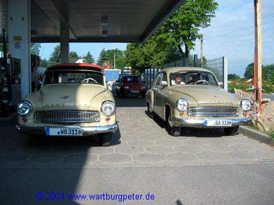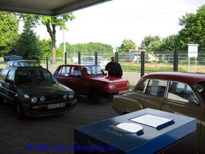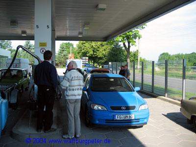 Gemeinsame Fahrt der Wartburgfreunde nach Dornburg. Kurze Rast an der Tankstelle. |