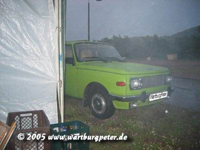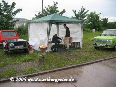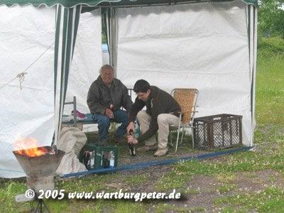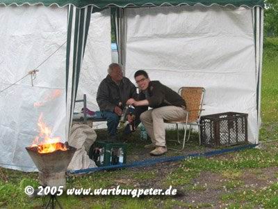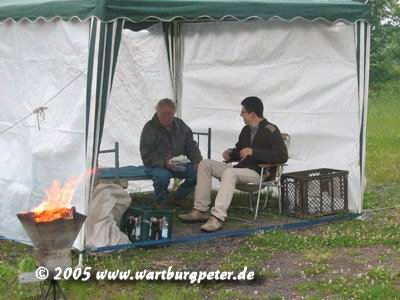 Hier trifft sich der harte Kern: Minitreffen im Anschluß an die Veranstaltung. Selbst stürmischer Wind und Regen können uns davon nicht abhalten! |