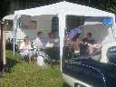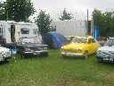 Das Treffen in Dornburg war wieder ein besonders schönes Zusammensein mit Wartburgfreunden aus den verschiedensten Winkeln Europas. So saßen wir denn als Dänen, Franzosen und Deutsche nebeneinander und hatten viel zu Fachsimpeln. Olaf Heinekens großes Zelt schützte vor großer Sonnenglut und am Abend beschützten wir gemeinsam das Zelt vor den orkanartigen Böen und Regenschauern, die jedoch nicht lange anhielten. Es gab sehr viel zu erzählen, so daß die Zeit wieder einmal nicht zu reichen schien. Dank Stefan aus Dänemark, der die Welt umrundet hat, gab es allerlei Fotos und Gesprächsstoff.