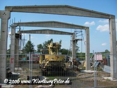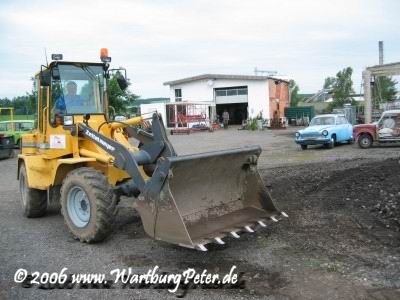 Der tag der offenen Tür muß vorbereitet werden. Batterie einbauen, um Auto wegzufahren? Dauert zu lange, meint Olaf, er hat ja 'nen Gabelstapler. |