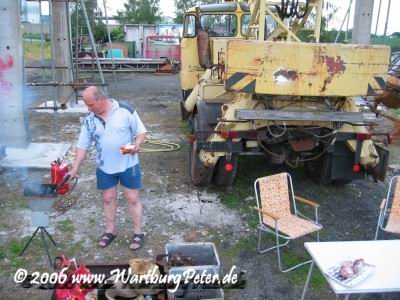 Angrillen in der neuen Werkstatt, das Wetter ist schön |