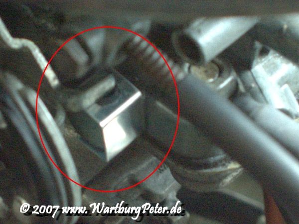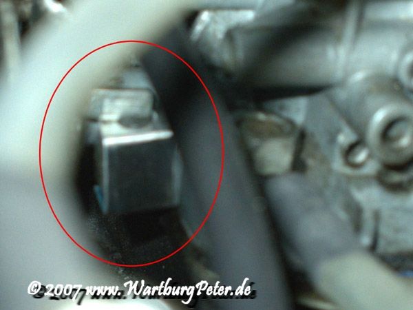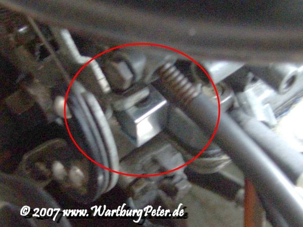 Das Gummi stülpte ich über die Anschlagschraube, es muß nur ein winziges Stück überstehen! Auf diese Weise dämpft es den Anschlag. Das Gummi ist bei Kälte steifer, damit weniger nachgiebig und bei Wärme weich und nachgiebig. Die Rückzugsfeder des Bowdenzugs drückt also bei höherer Temperatur das Gummi vollständig nieder, bis auf die Anschlagschraube (Leerlauf normal) und bei Kälte bleibt das Gummi höher als die Anschlagschraube stehen (erhöhter Leerlauf).