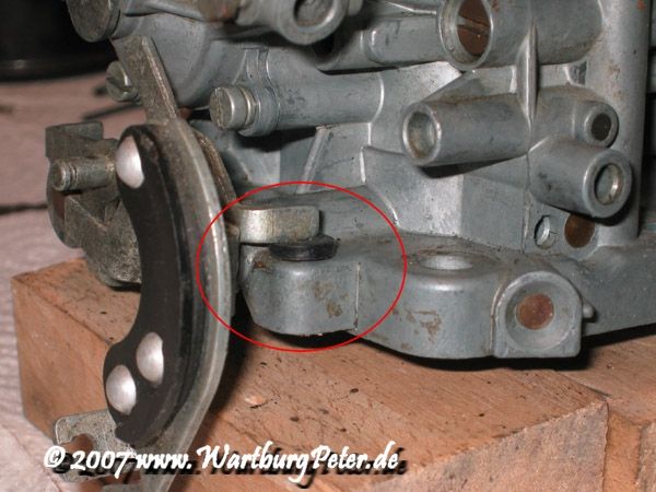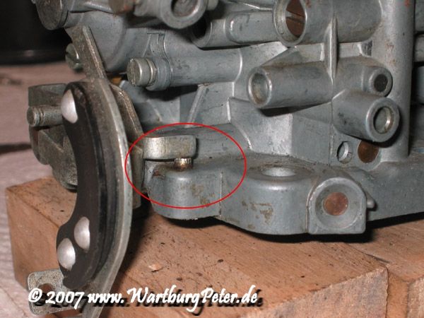 Ich weiß, daß die Drosselklappe am Vergaser sich im Laufe der Zeit dejustiert, weil z.B. die Anschlagschraube sich abnutzt. Da kam mir die Idee, mit Hilfe des winzigen Gummirestes den lästigen bimetallähnlichen Sommer-Winter-Effekt umzukehren!