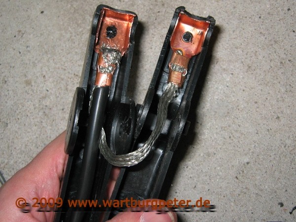 Der elektrische Kontakt erfolgt nur einseitig, die Gegenseite ist ein kurzes Stück Kupfer, völlig nutzlos.