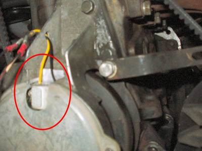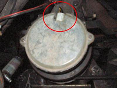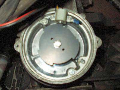Man erkennt trotz des leider etwas unscharfen Fotos die Sektoren für die einzelnen Zylinder. Der kleine Zahn oben sagt der Zündung: Achtung, jetzt kommt Zyl. 1. Der OT ist kurz hinter dem darauffolgendem Sektor. |