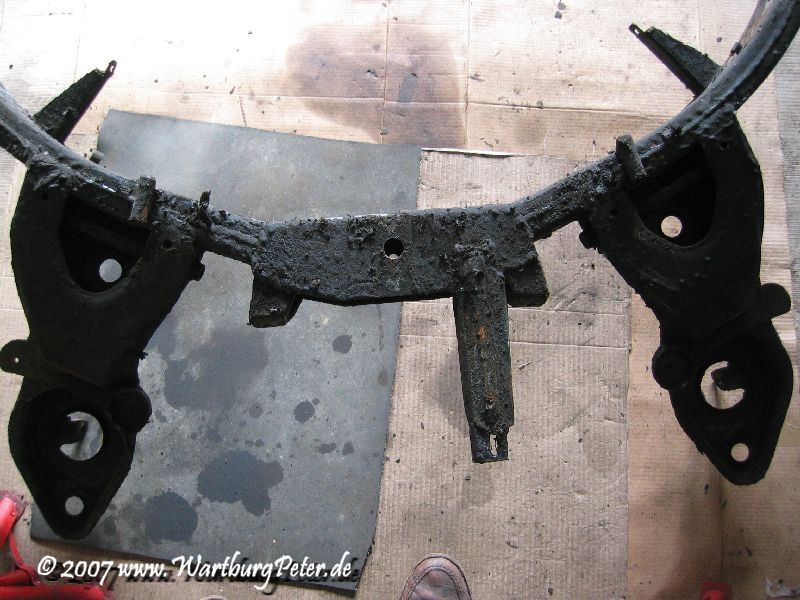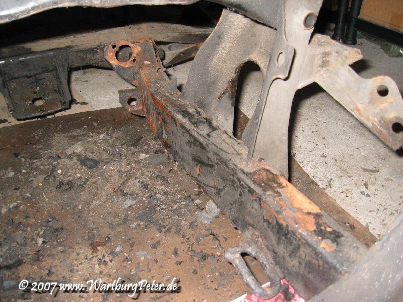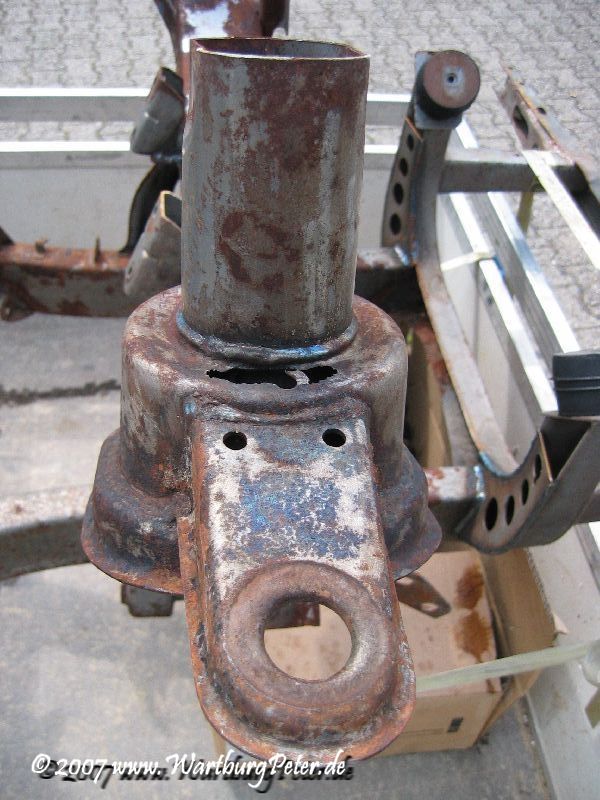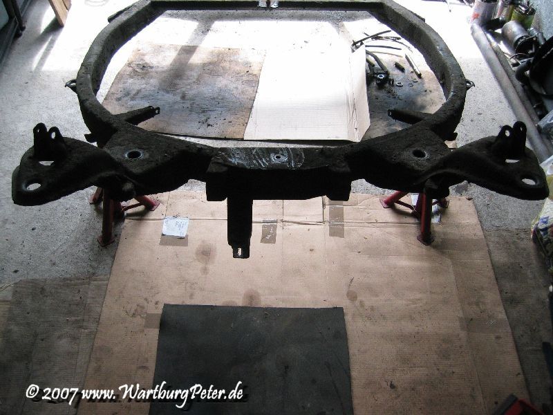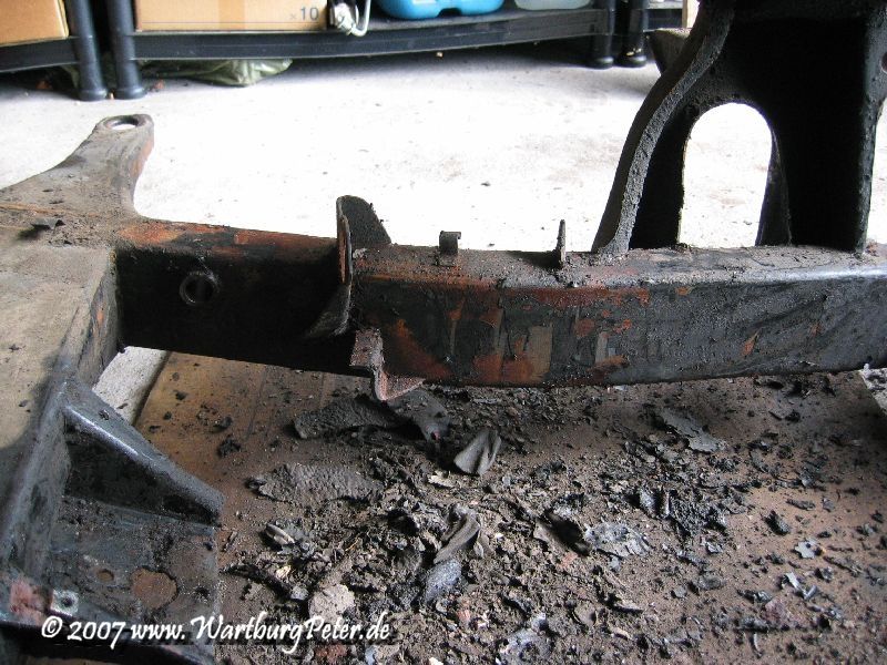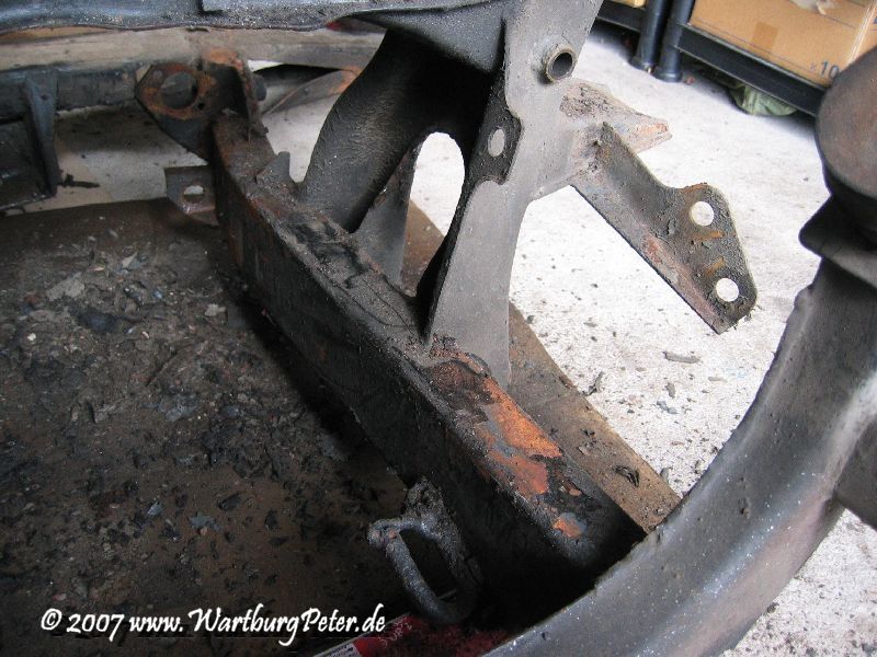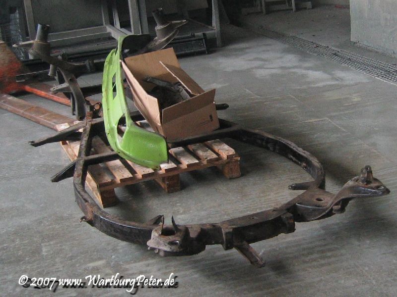 Die professionelle Instandsetzung des Rahmens war ohnehin geplant. Probleme an den Karosserieauslegern führten mich bereits 2002 zu Olaf. Also wieder das Wartburg-Gespann gesattelt und den Rahmen in die Werkstatt geschafft. Die Distanz von ca. 550 km habe ich mit dem Anhänger am Camping in 9 und 13 Stunden je Richtung bewältigt.