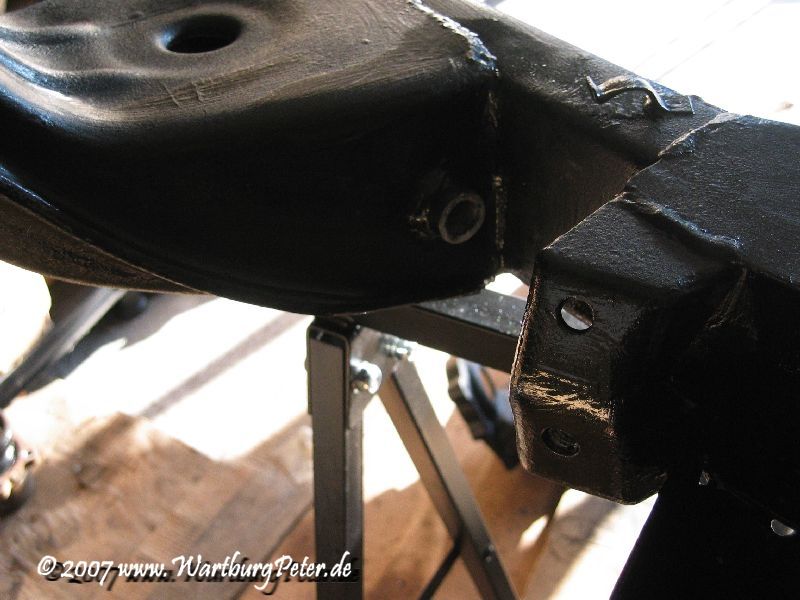 Alle Querlenkerrundstäbe lassen mit leichten Druck einschieben (oder sehr leichte Schläge mit dem Gummihammer). Geht das sehr schwer oder kippelig zu leicht, stimmt etwas nicht!