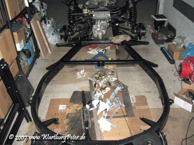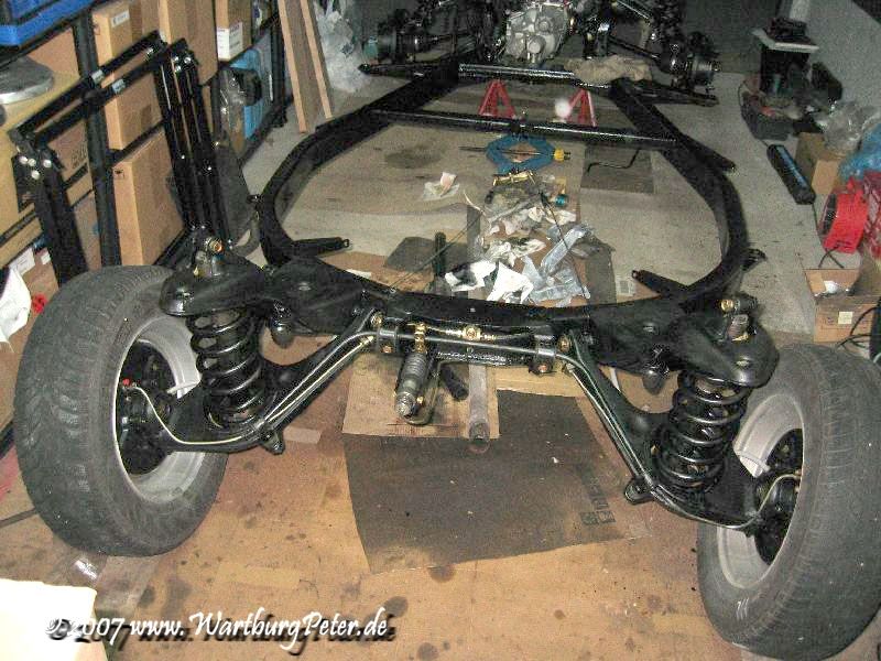 Zwischenbilanz: Das Fahrwerk ist bald fertig, die Karosserie aufzunehmen. Den Besuch der OMMMA mußte ich mir in diesem Jahr verkneifen, da ich unbedingt bis zum 05. September fertig werden mußte. Am 06. September ist Karosseriemontage!