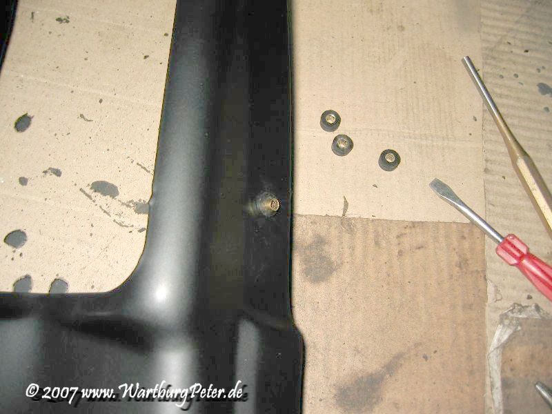 Um die Lebensdauer der Schürze zu erhöhen, ist eine kleine technische Verbesserung nötig. Um zu verhindern, daß das gute Stück durch Schwingungen und Vibrationen einreißt, fertige ich mir passende Schwingungsdämpfer an.
