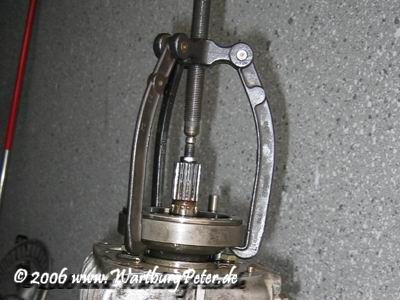 Nebenbei erwähnt, ich habe das Getriebe allein ein- und ausgebaut, wer kann sollte sich jedoch helfen lassen. Um den Freilauf zu reparieren, benötigt man einen langen filigranen und einen größeren Abzieher. Ohne diese beiden Werkzeuge - wenig Chancen!