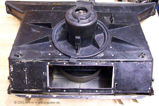 Zum Vergleich: der Wartburglüfter hat die etwas gröberen Lamellen und einen vergleichbaren, aber völlig gekapselten Motor.