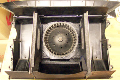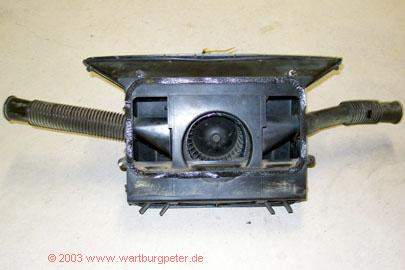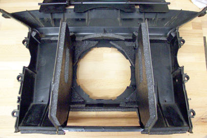 Zur Geräuschdämmung und Abdichtung habe ich die Innenkammer des Lüfters mit Dämmstoff beklebt. Das Zeug, daß ich auch an der Motorhaube habe, klebt extrem fest und ist äußerst weich und elastisch. |