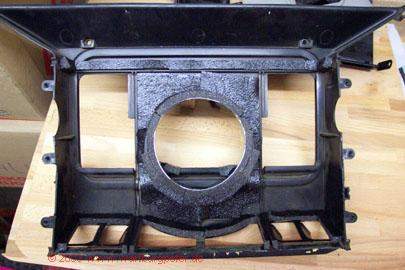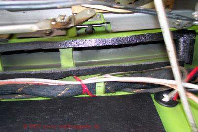 Der Übergang zwischen Verteilergehäuse und Frontscheibenbelüftung (Karosserie) hat bisher genügend Spalt besessen, so daß die Luft auch unter das Armaturenbrett geblasen wurde. also habe ich auch hier einen wichen Schaumstoffstreifen aufgeklebt. |