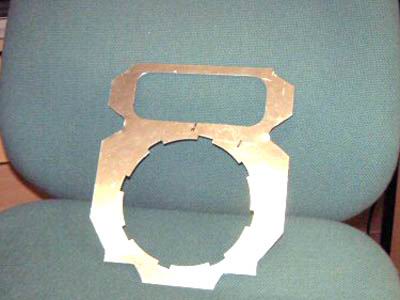 Das Blech für den Fixateur vorm Abkanten. Ein Königreich für eine Abkantbank! 2mm Alu ist nicht mehr so einfach von Hand zu biegen. |