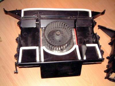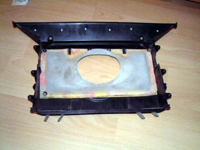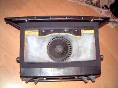 Außerdem war das ein ganz schönes Gefummel. Die Blechverstärkungen müssen sich wohl beim aufschneiden wohl etwas verzogen haben, jedenfalls war es alles recht klemmig. Wenn man dann noch die Luftklappen reinfriemeln muß, wird's lustig. Immer wenn man alles auf der einen Seite drin hat, springt auf der anderen Seite was wieder raus. Naja.