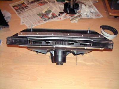 Das Vorderteil mit Trichter. Obwohl das ja alles etwas konisch ist, habe ich es hinbekommen, daß der Trichter tatsächlich einigermaßen mittig über dem Lüfterrotor sitzt. Und das, obwohl ich beide gegenüber dem Original etwas höher gesetzt habe. |