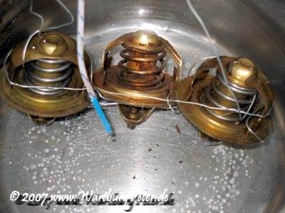 - ab 95°C soll der Thermostat mehr als 6mm geöffnet sein.