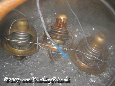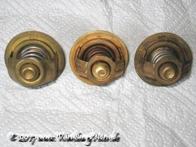 Da gibt es einiges, was man ergründen muß, um der Ursache auf die Spur zu kommen. Wenn man sich entschlossen hat, den Thermostat zu prüfen, so ist der Aufwand hierfür eigentlich nicht so hoch, sofern man beim Aufschrauben des Thermostatgehäuses (Wartburg 353) nicht eine verrostete Schraube abbricht...