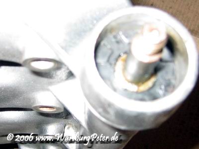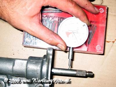 Ob die Welle rund läuft, kann man schnell an dieser Stelle selbst ermitteln, indem man, wie im Bild zu sehen, die Zündeinstelluhr zu Rate zieht.