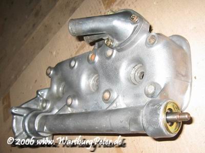 Der zerlegte Zylinderkopf wird gründlich gereinigt. Es ist nicht zwingend erforderlich, dies mit Glasperlstrahlen zu machen oder mit einer Messingbürste. Ich mache das mit einem Eimer Wasser und gewöhnlichem Waschpulver, sowie einer hölzernen Handwaschbürste. Damit geht jeder Dreck wunderbar ab. |
