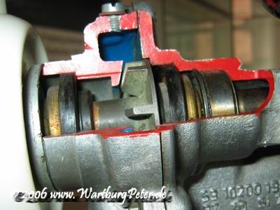 Für die Neugierigen, anbei noch ein Paar Schnittbilder. Hier kann man schön sehen, wie die Wasserpumpe im zusammengebauten Zustand aussieht, welche Abstände die Teile zueinander haben. | |