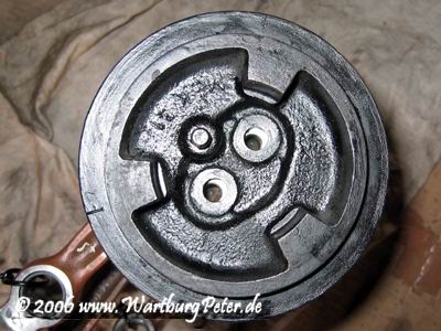 So ein Kolben hat eine kleine Kerbe am Kolbenhemd, welches zur Vergaserseite zeigen muß. Am besten man übt das zuvor im kalten Zustand, um nicht murks zu machen.