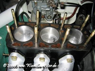 Stehbolzen sollten nicht verrostet eingesetzt werden. Hier hilft dauerhaft, sie galvanisieren zu lassen. Einer der späteren Anweisungen des AWE zur Folge, sind die Stehbolzen leicht zu fetten. Wer das nicht macht, riskiert in späteren Jahren derart vergammelte Stehbolzen, das sich der Zylinderkopf nicht mehr abnehmen läßt.