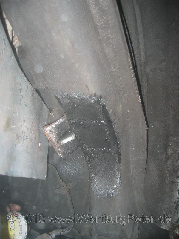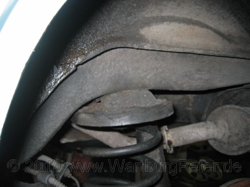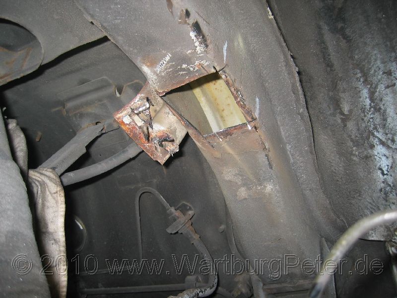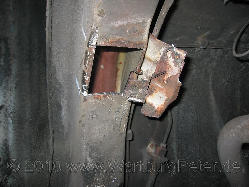 Erfreulich: Egal, was man da auf den Fotos zu erkennen meint, das braune, die Flecken im Hohlraum, sind kein Rost. Alles sieht sehr gesund aus. Farbe und Hohlraumkonservierung überall!