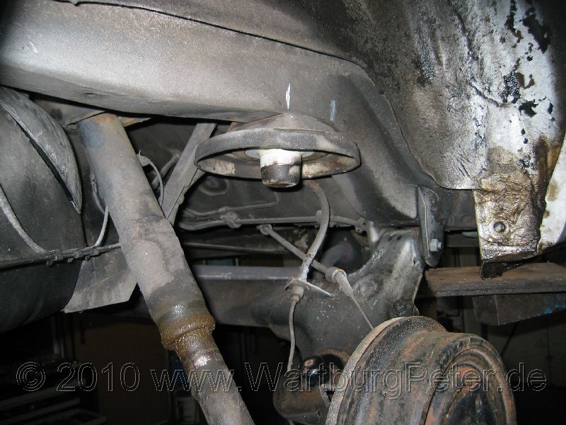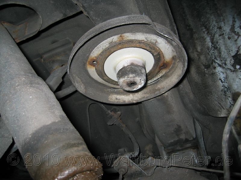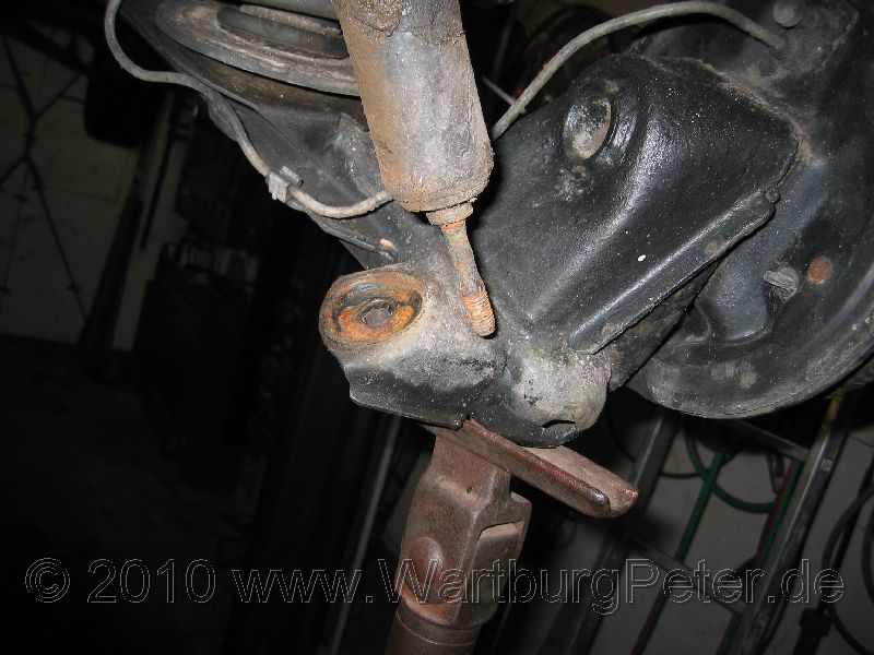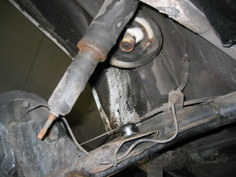 Die Stoßdämpfer sind alt, die Muttern verrostet. Um die Stoßdämpfer nicht zu beschädigen, haben wir die Muttern vorsichtig aufgeschnitten und "gesprengt". Das Nachschneiden der Gewinde versteht sich von selbst.
