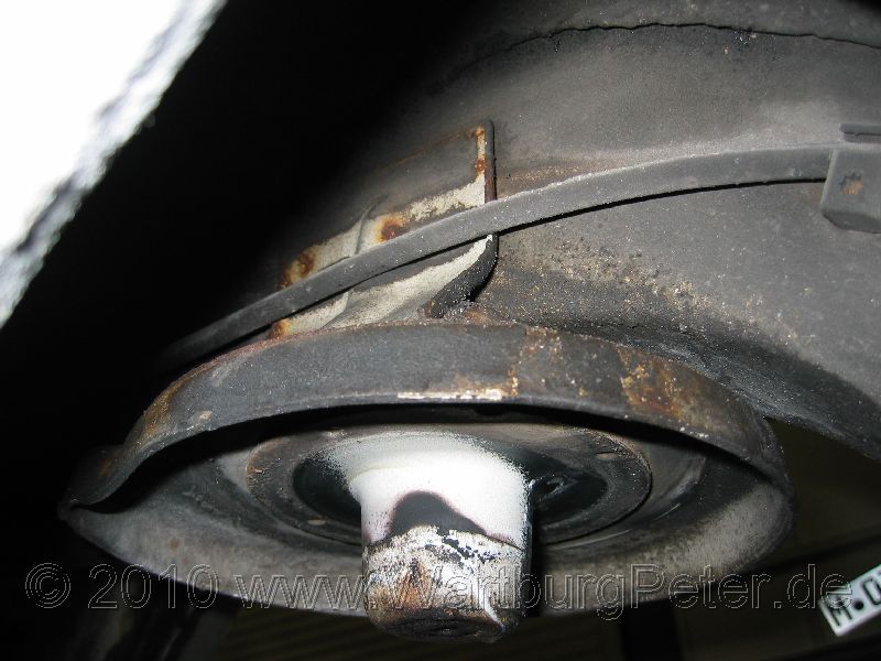 Während ich noch dachte, gut vorbereitet zur HU zu fahren, da ich in den letzten Monaten eine ganze Menge am Kadett auf Vordermann gebracht habe, habe ich anscheinend eine "Kleinigkeit" übersehen. Der "TÜVer" jedoch, als hätte er einen Tipp bekommen, nimmt als erste Amtshandlung einen Schraubenzieher und erlegt meinen Kadett, da ist er noch gar nicht richtig zum Stillstand gekommen, mit einem gezielten Stich in den oberen linken Federteller.