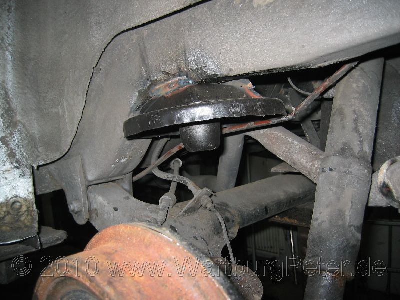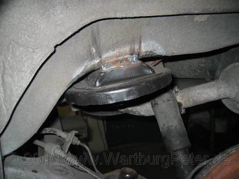 Die neuen Federteller werden an der alten Position festgeschweißt, so daß sie platt auf dem Träger sitzen.